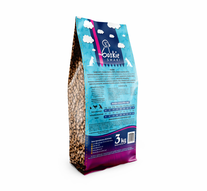 Boskie Smaki - Bezzbożowa karma dla psa 71,5% Indyk z Cielęciną 3kg