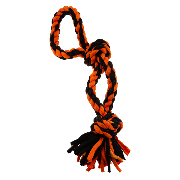 Gruby, pomarańczowo-czarny sznur z dwoma supłami pozwoli Ci aktywnie spędzić czas ze swoim pupilem.