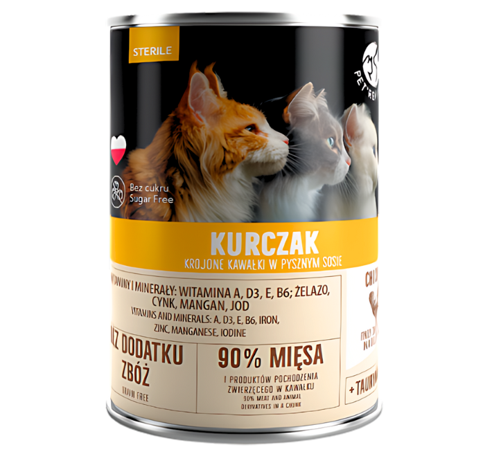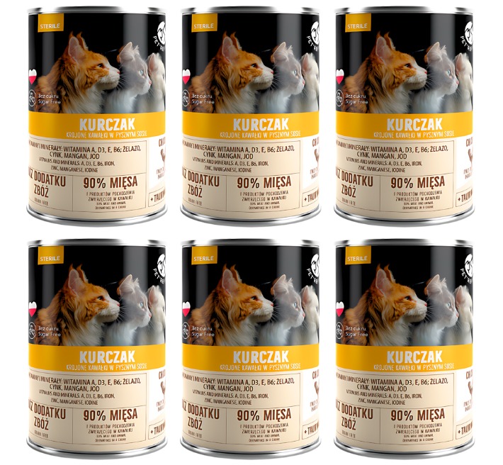 PetRepublic Puszka karma mokra dla kota kawałki w sosie z kurczakiem STERILE 6x400g ZESTAW