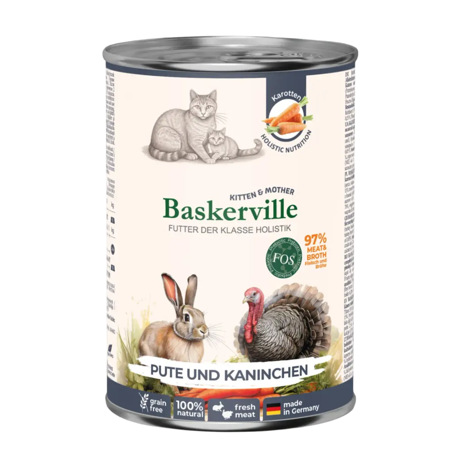 BASKERVILLE. INDYK I KRÓLIK. Pełnoporcjowa mokra karma holistyczna z prebiotykiem FOS dla kotek karmiących i kociąt.