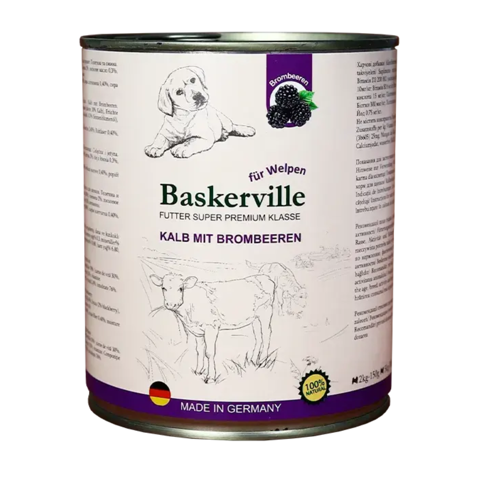BASKERVILLE Super-premium Mokra karma dla szczeniąt Cielęcina i jeżyny 800g