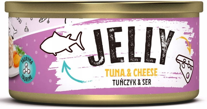 Mr. Bandit Jelly Tuńczyk z Serem 80 g to aromatyczny przysmak dla dorosłych kotów, który łączy w sobie wysoką zawartość mięsa rybnego z delikatną, apetyczną galaretką. Tuńczyk (50%) stanowi wartościowe źródło pełnowartościowego białka, a dodatek sera (4%) podnosi smakowitość produktu, czyniąc go idealnym wyborem nawet dla wybrednych kotów. Galaretka nie tylko uzupełnia dietę, ale też wspiera prawidłowe nawodnienie organizmu. Dodatek tauryny oraz witaminy E wpływa korzystnie na pracę serca, odporność oraz ogólną kondycję kota. Idealny jako smakowity dodatek między posiłkami.