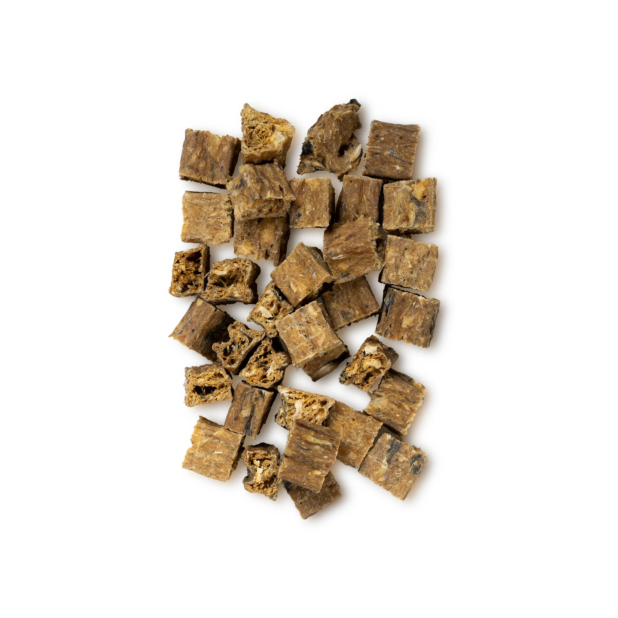 Kostka z dorsza to delikatny, ale pełen smaku przysmak, który przeniesie Twojego psa w świat morskich przygód. Wykonane z 100% naturalnego mięsa dorsza, te kostki są prawdziwym skarbem dla zdrowia i smaku każdego psa. Dorsz jest znany z obfitości kwasów omega-3, które mają pozytywny wpływ na zdrowie skóry, dodając blasku sierści oraz wspierają prawidłowe funkcjonowanie układu sercowo-naczyniowego.